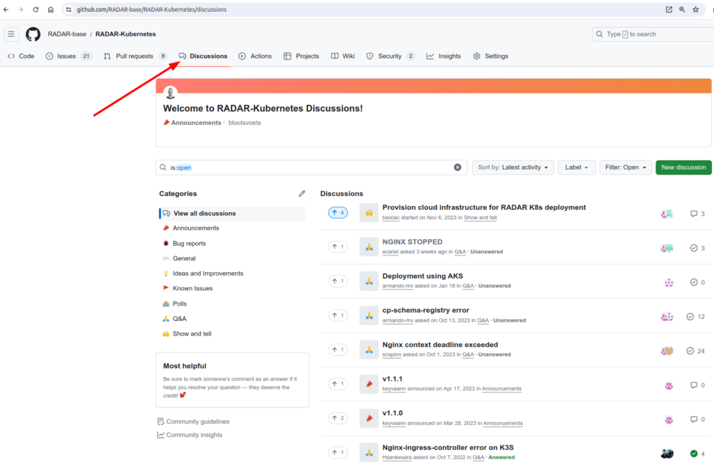 Most of the Key GitHub Repositories will have Discussion Channels. These are generally preferred to Slack for triage and longer component-specific discussions as they are more visible to the community.